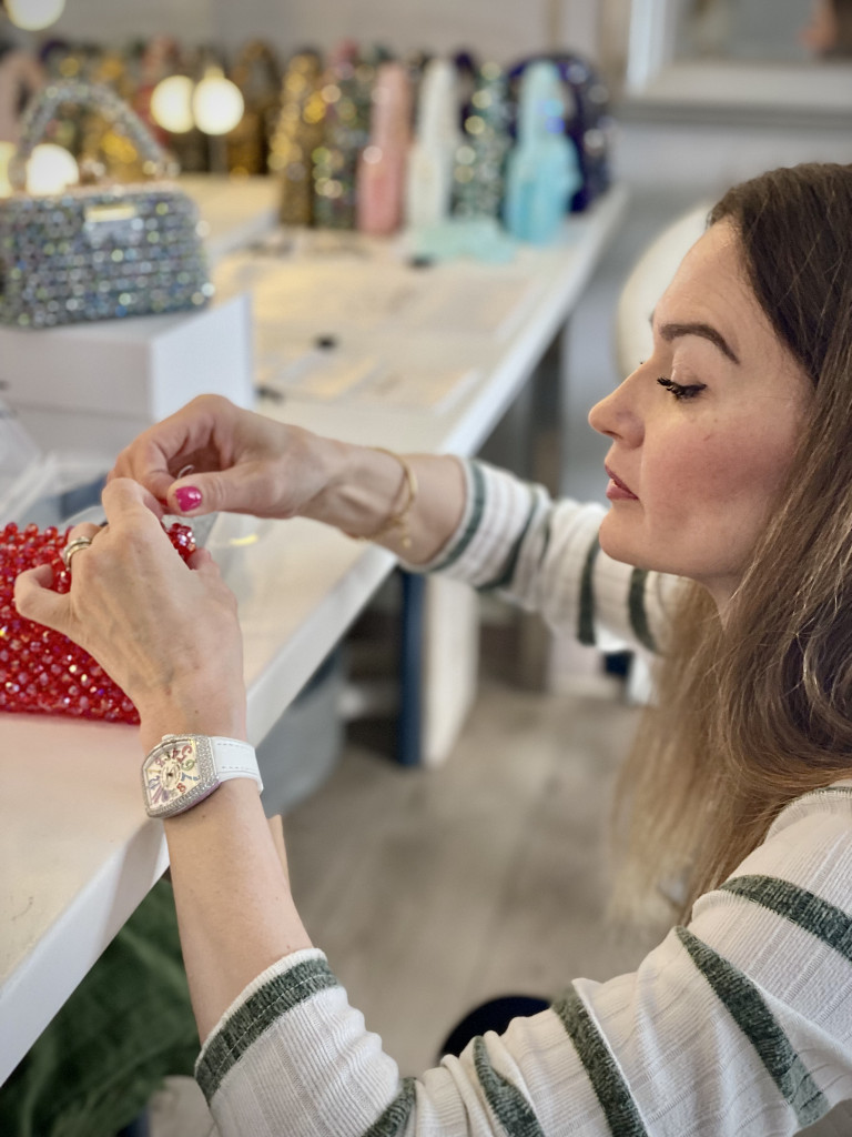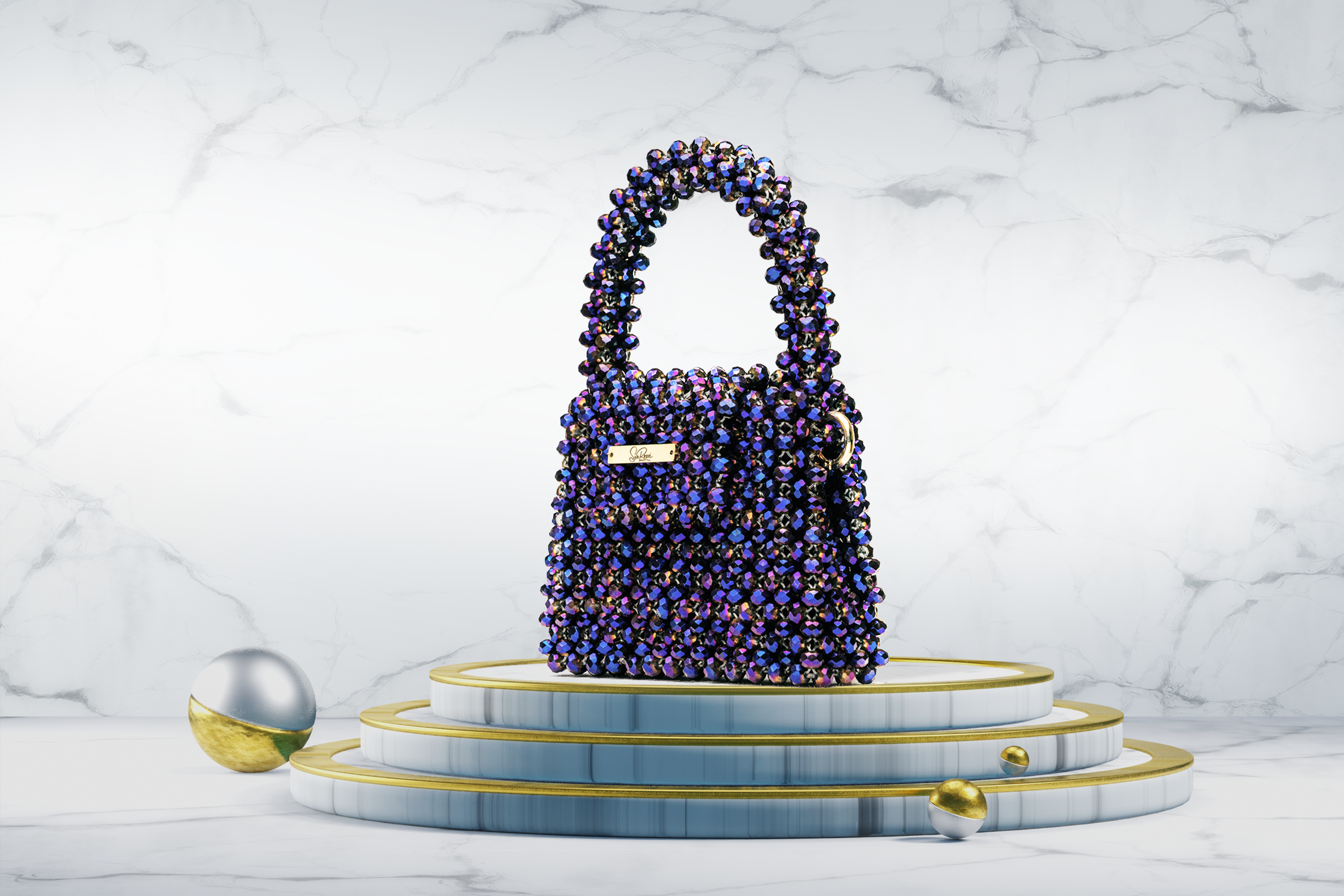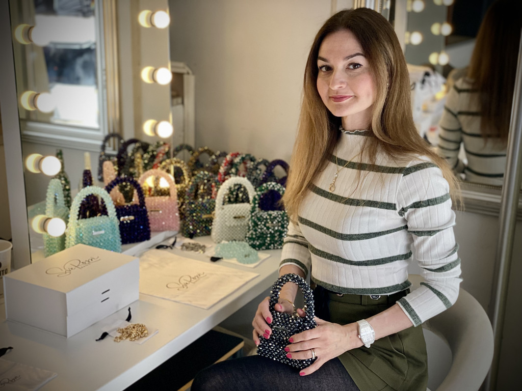 Driven by a lifelong passion for fashion, Svetlana designed the first prototypes of her SveRossi bags in 2022. Her unique, jewel-like creations are adorned with glittering glass pearls, whose color changes with the light of day and night.