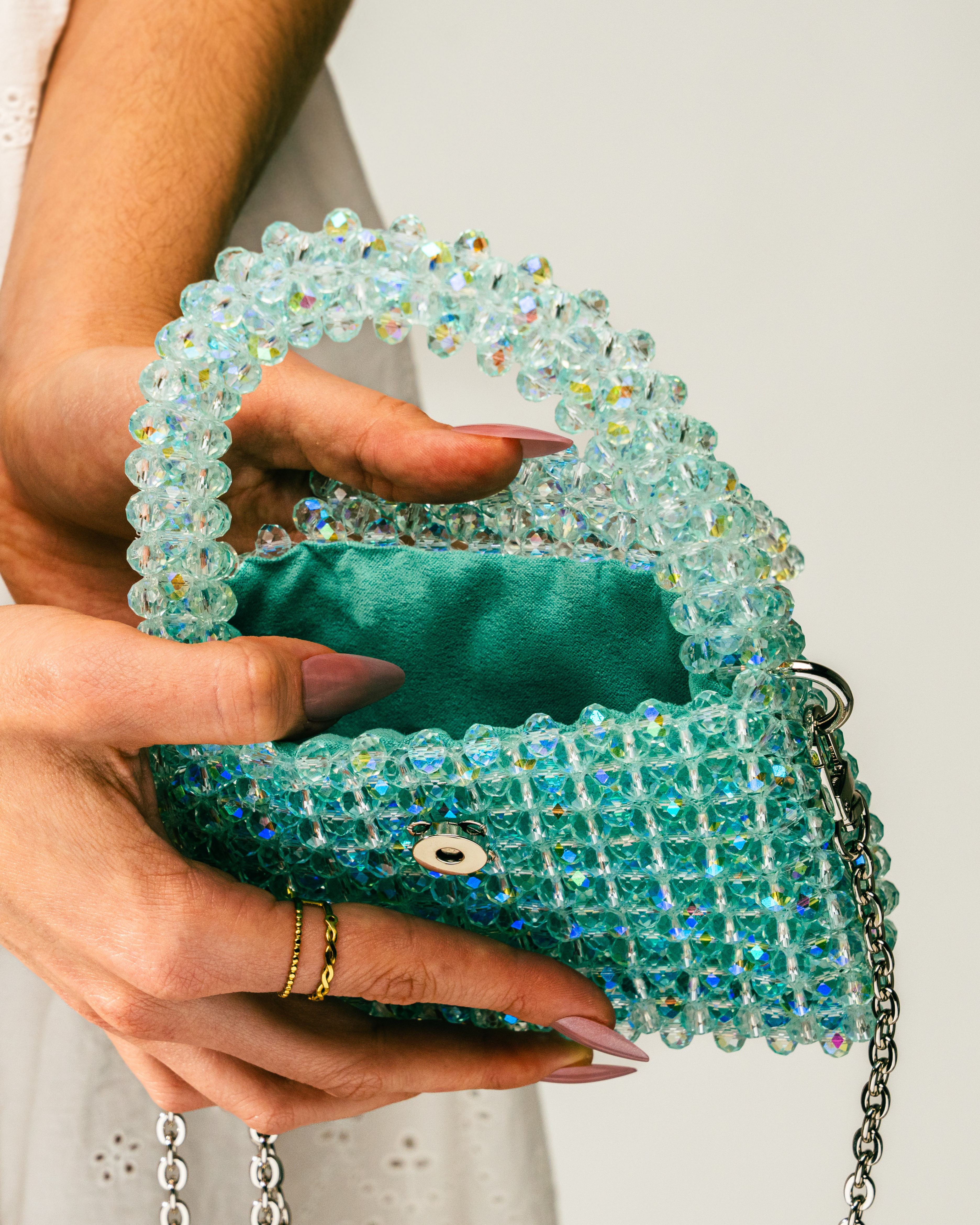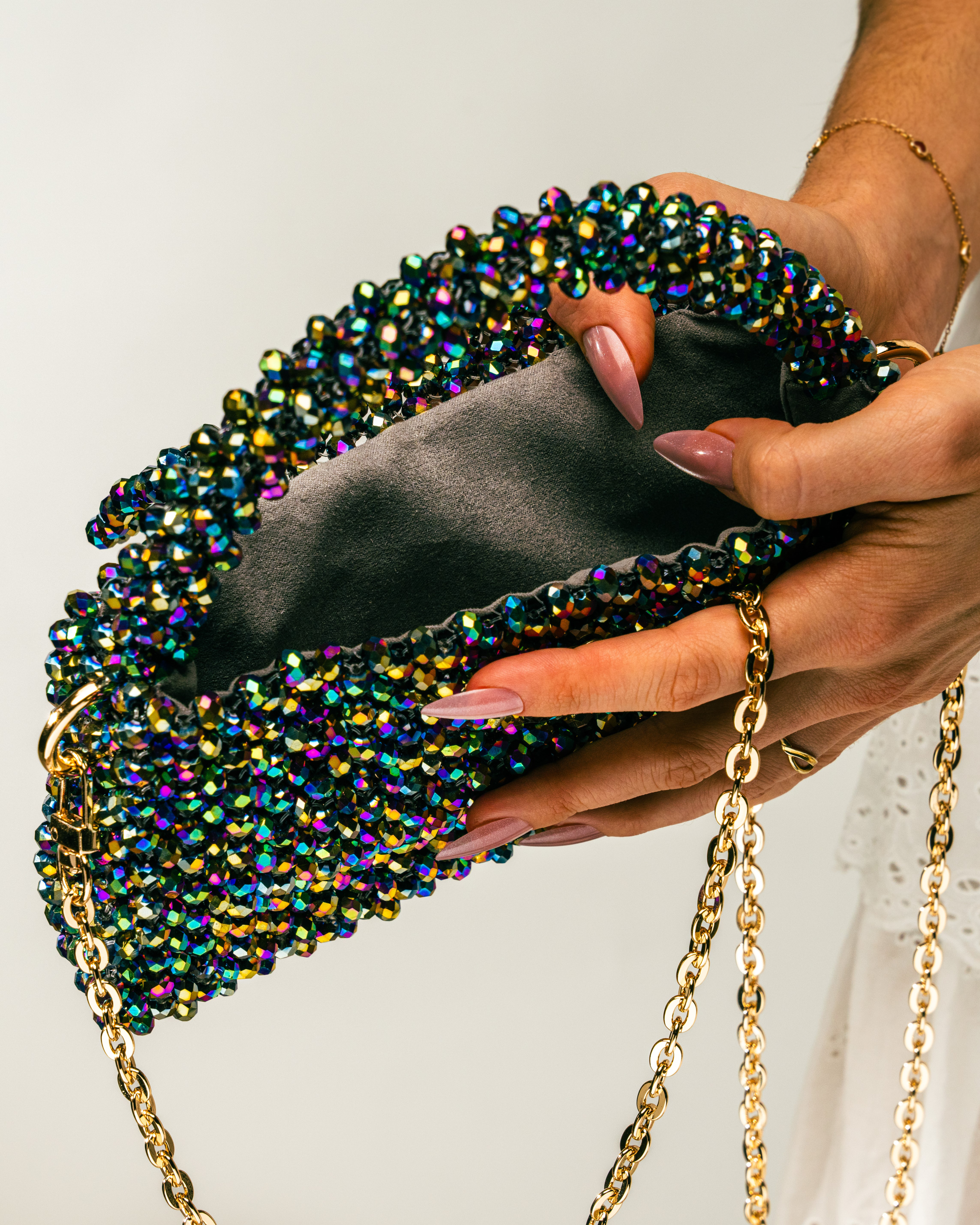 Though adorned in crystals, these bags are made to last. Reinforced from the inside out, the interior features premium stitching and structural integrity ensuring your bag remains as reliable as it is radiant.